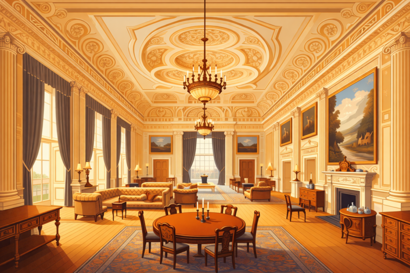 Dumfries House, разположена в Ayrshire, Шотландия, е зашеметяващ пример за паладианска архитектура (Palladian architecture) и е потопена в богата история. Това грандиозно имение, построено през 18-ти век, е проектирано от известния шотландски архитект Робърт Адам (Robert Adam) и е един от най-ценните имоти в страната.