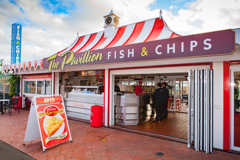 “Ресторантите” за риба и чипс (fish and chip shops или наричани още chippies) се появяват за първи път в Обединеното кралство през 1860 г., а до 1930 г. има над 35 000, след което тенденцията се обръща и до 2024 г. са само около 6 000. В миналото повече хора са консумирали фиш енд чипс, отколкото днес, тъй като сега съществуват много алтернативни храни за бърза консумация на ниска цена, особено в големите градове. В последно време обаче има обратната тенденция на преоткриването на тази класика от все повече небританци в UK.