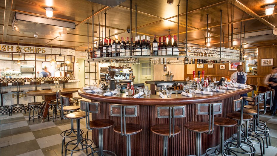 Разположения в Ковънт Гардън (Covent Garden), The Rock and Sole Plaice, датиращ от 1871 г., е най-старият ресторант за риба и чипс в Лондон, който все още работи. Концепцията за рибен ресторант, за разлика от храната за вкъщи, е въведена от Самуел Айзъкс от Уайтчапъл, Източен Лондон, който управлявал процъфтяващ бизнес с риба на едро и дребно в Лондон и Южна Англия през втората половина на 19 век. Първият ресторант на Айзъкс отваря врати в Лондон през 1896 г., сервирайки риба с пържени картофи, хляб и масло и чай за девет пенса и популярността му гарантирала бързо разрастване на веригата. Ресторантите на Айзъкс са застлани с килими, имат сервиз, маси с покривки, цветя, порцелан и прибори за хранене като правят атрибутите на луксозното хранене достъпни за работническата класа за първи път. Те се намирали в Лондон, Клактън, Брайтън, Рамсгейт, Маргейт и други морски курорти в Южна Англия.