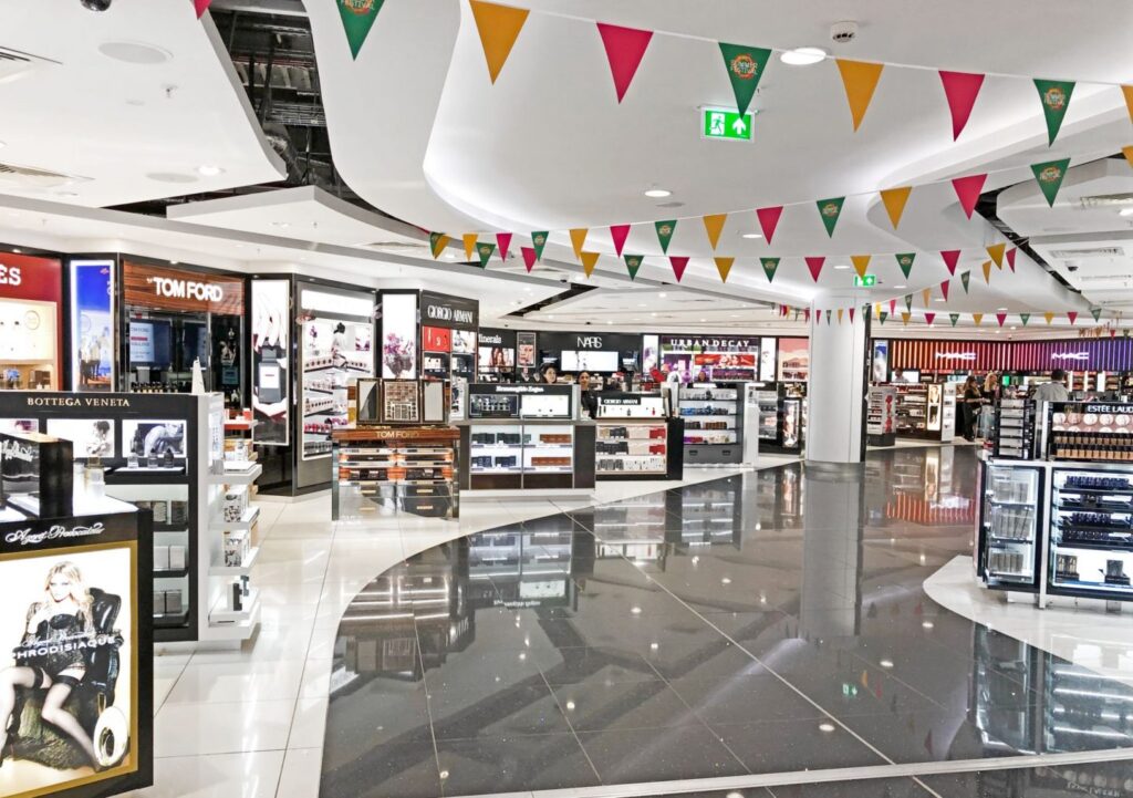 Летището има два терминала с общо 65 изхода, южен и северен. И двата разполагат с магазини и ресторанти на сушата и на летището и всички зони са достъпни за пътници с увреждания. Има съоръжения за повиване и хранене. Бизнес пътниците имат специализирани салони. Северният и Южният терминал са свързани с 0,75 мили (1,21 km), повдигната, двупосочна автоматизирана зона за превоз на хора. Те не са свързани веднъж след сигурността.