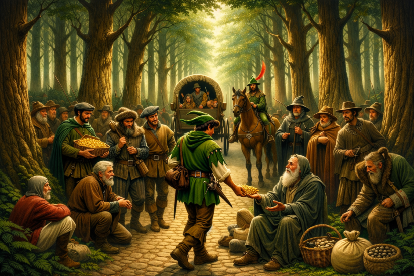 Един от ключовите аспекти на характера на Робин Худ е неговият ангажимент към социалната справедливост. Той и бандата му разбойници са представени като защитници на потъпканите и потиснатите, които отнемат от богатото благородство и връщат откраднатото богатство на обеднелите селяни. Този аспект на легендата отразява икономическите различия и социалните несправедливости на времето, докато обикновените хора се борят да оцелеят, а благородниците се радват на огромно богатство и власт.