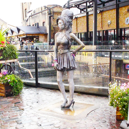Статуята на Ейми Уайнхаус в Камдън Маркет (Camden Market), Лондон, е трогателна почит към емблематичната певица, открита на 14 септември 2014 г., когато щеше да бъде нейният 31-ви рожден ден. Създадена от скулптора Скот Итън (Scott Eaton), бронзовата статуя в реален размер стои в сърцето на Камдън, квартал, с който Ейми е дълбоко свързана и където прекарва голяма част от живота и кариерата си. Камдън отдавна се свързва с алтернативната музикална сцена в Лондон, което го прави идеалното място за мемориала.