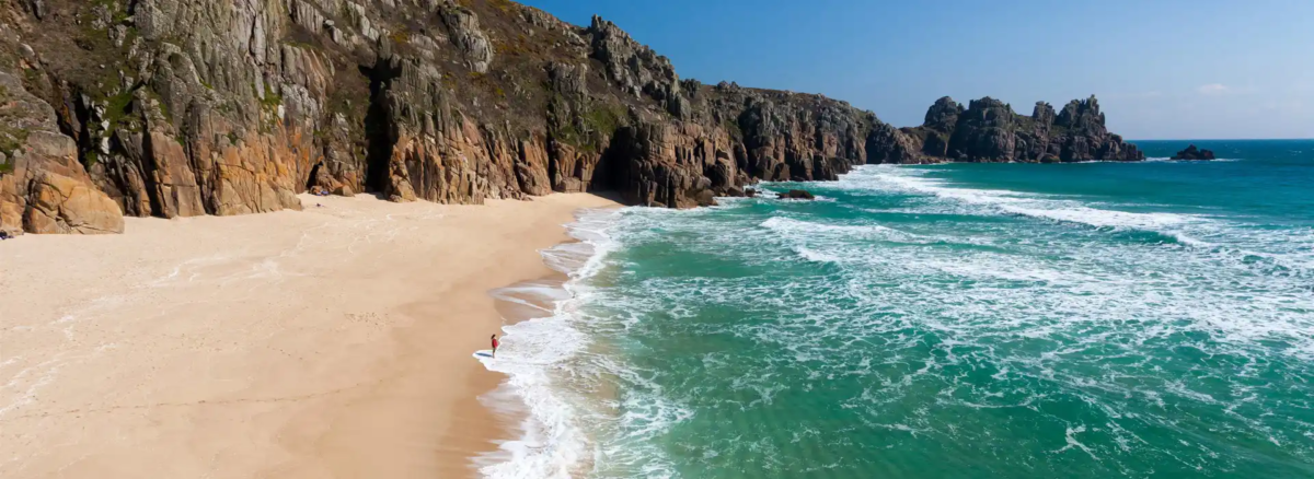 Плажът Pedn Vounder, сгушен сред суровата красота на полуостров Penwith в графство Корнуол (Cornwall), се смята за един от най-живописните и уединени плажове в Обединеното кралство. Разположен в непосредствена близост до селцето Porthcurno, той предлага зашеметяващи гледки и спокойно бягство от шума и суетата на ежедневието. Плажът се характеризира със златист пясък, чисти тюркоазени води и драматични скали, което го прави любимо място за любители на природата, фотографи и авантюристи.