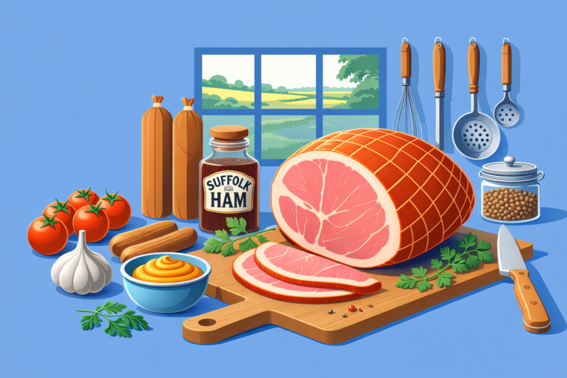 Шунката Съфолк е традиционен британски деликатес, който произхожда от графство Съфолк (Suffolk) в източната част на Англия. Тази шунка е известна със своя богат вкус и сочна текстура, които са резултат от почитан от времето процес на сушене, който е усъвършенстван в продължение на векове. Шунката Suffolk често се свързва със своя силен, леко солен вкус, балансиран с нотка на сладост, която идва от естествените захари в месото и всички добавени съставки по време на процеса на сушене.