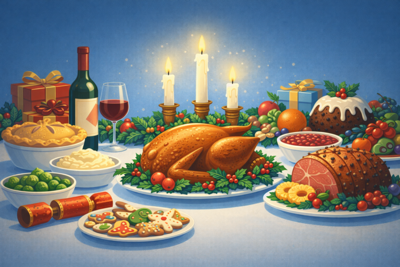 Викторианската Коледа въвежда и класическата коледна кухня. Печената пуйка постепенно измества по-старите ястия като гъската и дивеча. Коледният пудинг – тежък, богат на сушени плодове, подправки и алкохол – се превръща в кулминация на празничната вечеря. Mince pies и различни сладки допълват трапезата.